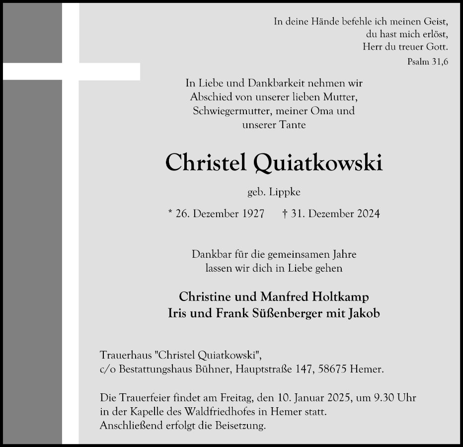 wir wünschen Ihnen für die kommende Zeit viel Kraft und dass es Ihnen gelingt, dankbar auf die positiven Erinnerungen zurückzublicken. Diese Gedenkseite möge Ihnen dabei helfen, Ihre Trauer zu teilen und das Andenken gemeinsam wachzuhalten.
