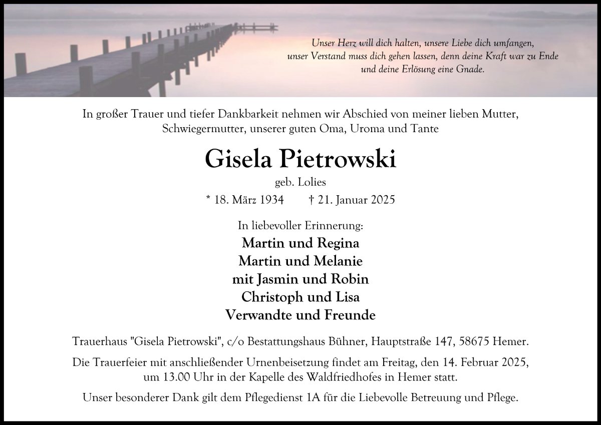 Vielen Dank Tante Gisela für die vielen guten Erinnerungen. Die schönen Tage werde ich nie vergessen.