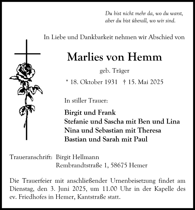 in diesen Tagen fühlen wir mit Ihnen und wünschen Ihnen von Herzen, dass Sie aus den glücklichen Erinnerungen Kraft schöpfen, um positiv in die Zukunft zu gehen. Diese Gedenkseite möge Ihnen dabei helfen, Ihre Trauer zu teilen und das Andenken gemeinsam wachzuhalten.