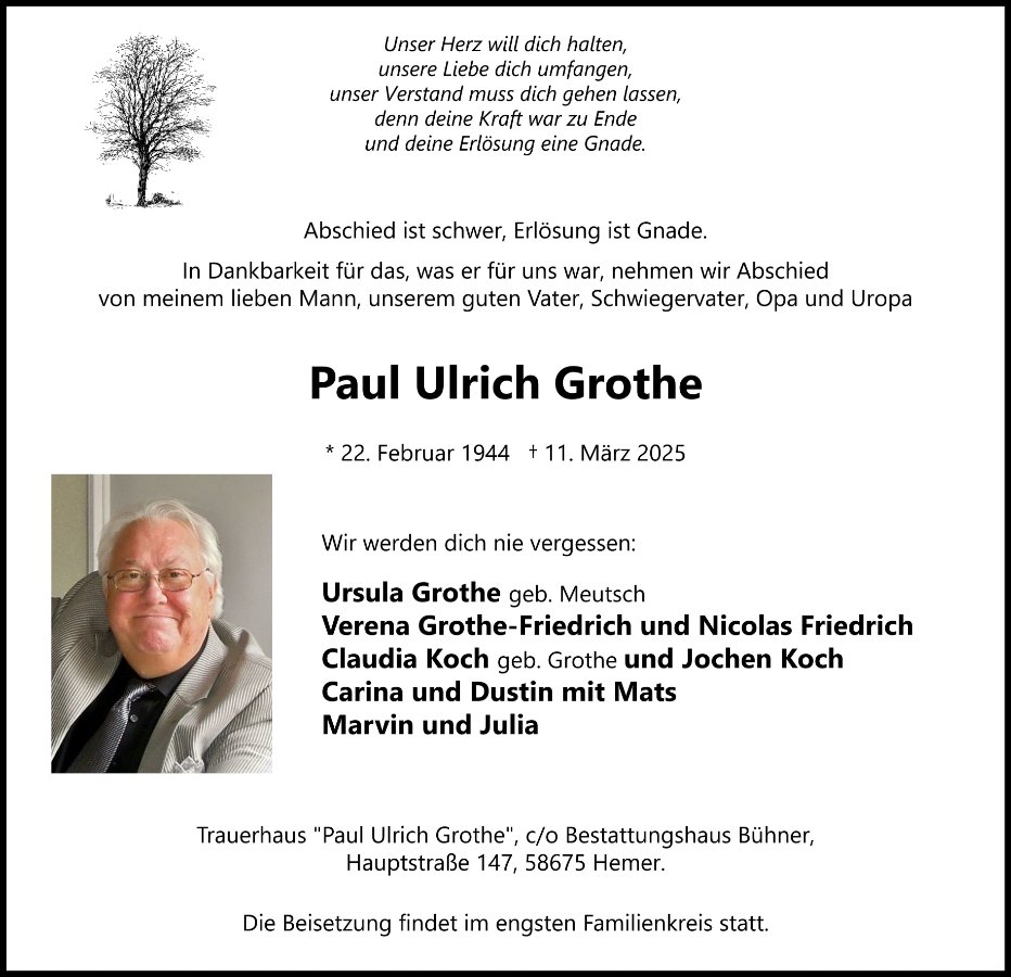 wir wünschen Ihnen für die kommende Zeit viel Kraft und dass es Ihnen gelingt, dankbar auf die positiven Erinnerungen zurückzublicken. Diese Gedenkseite möge Ihnen dabei helfen, Ihre Trauer zu teilen und das Andenken gemeinsam wachzuhalten.