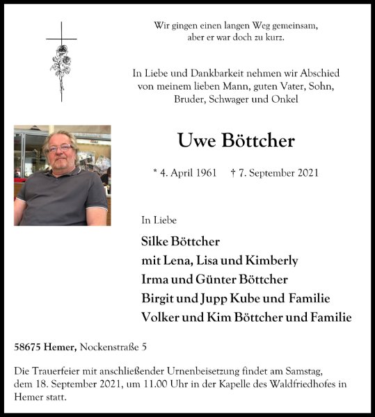 Es ist so schwer wahrzuhaben, dass Uwe nicht mehr bei uns ist.